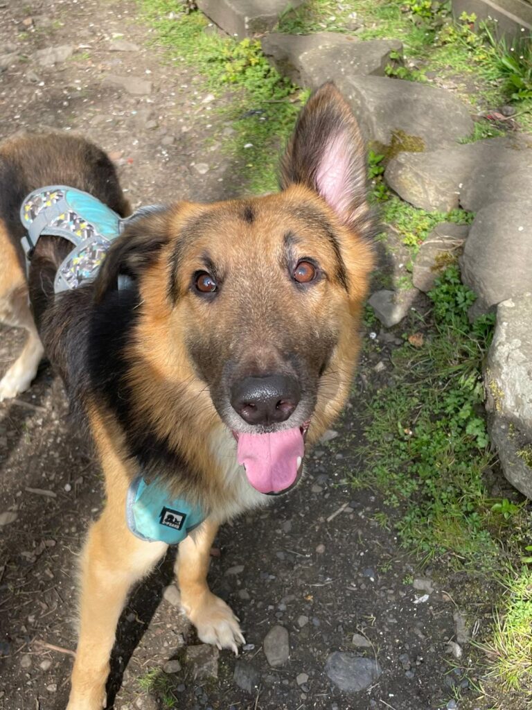 Bandit is 4 years old and very handsome with his 2 pointy ears, although you usually find him with 1 up and 1 down which just adds to his appeal. He is great with people and dogs and had no reaction when cat tested. Although he is a big boy, he is relatively calm in demeanor and walks nicely on a lead, especially if there are treats on offer. You might need to watch your fingers though, treats get him excited.