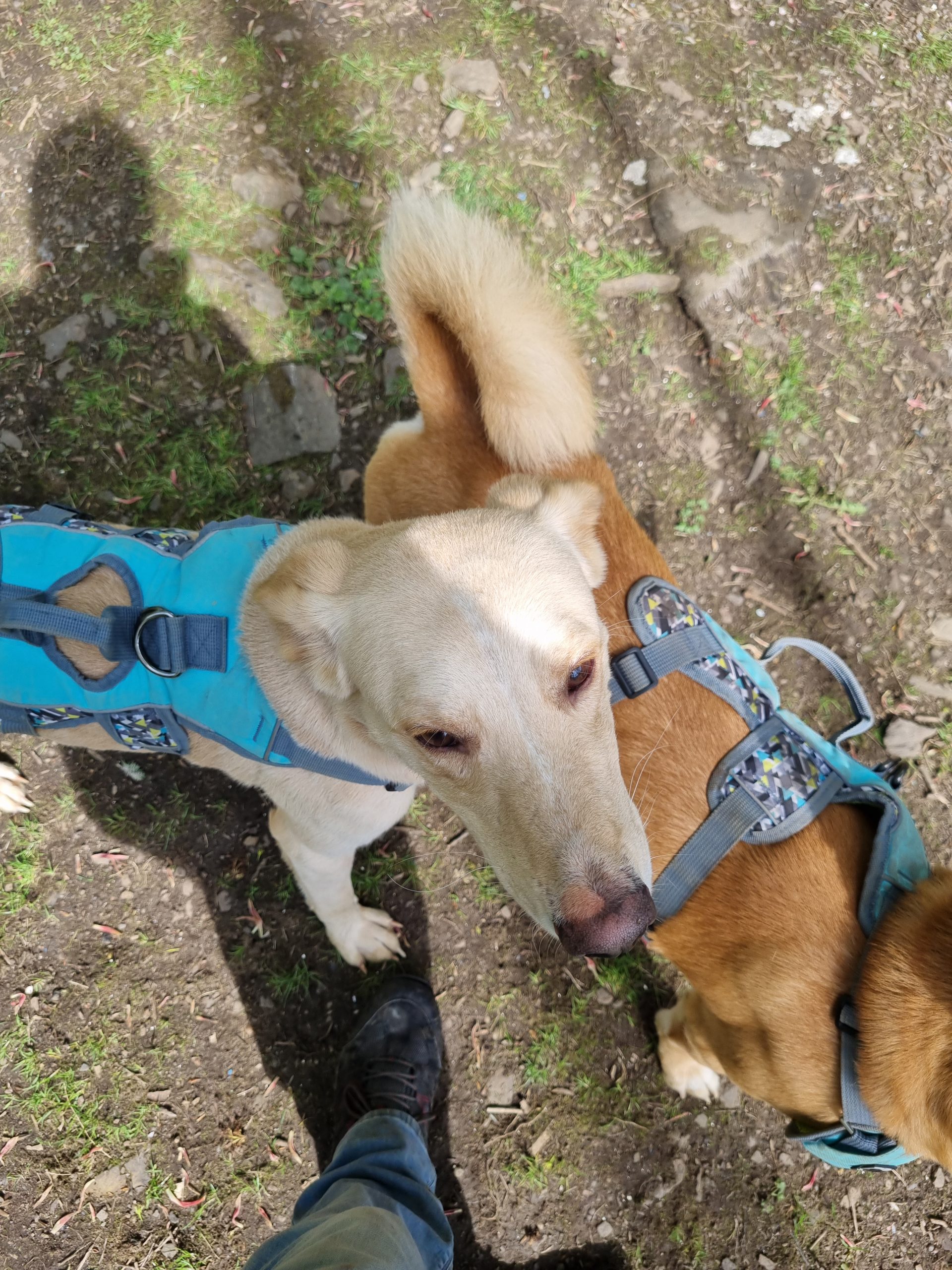 Thinking of Ollie never fails to make me laugh as he is such a funny boy. He loves everyone and is great with other dogs. He is the clown of the pack, is always goofing around and looking to get into mischief. He also loves to be close and cuddle up to you, even when you are standing up! Despite being all legs, he is quite agile and stair gates have proven to be ineffectual since about 6 months old.